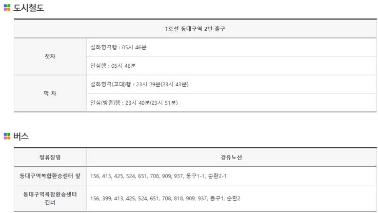 좀 더 세부적으로 살펴볼게요. 1호선 동대구역 2번 출구에는 도시철도를 탑승할 수 있는데요.