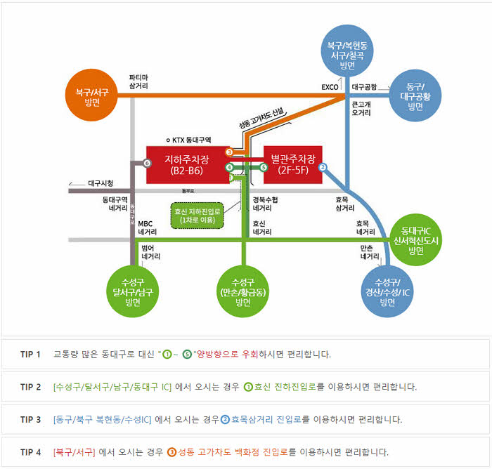 위의 이미지는 동대구역 복합환승센터의 주차장을 이용할 때 요긴한 팁을 도표화한 것인데요.